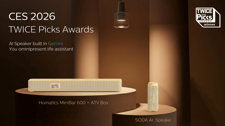We are happy to announce that our products, the Homatics MiniBar 600 + ATV Box and the SODA AI Speaker, have been selected as winners in the 2026 CES Picks Awards within the TWICE category.